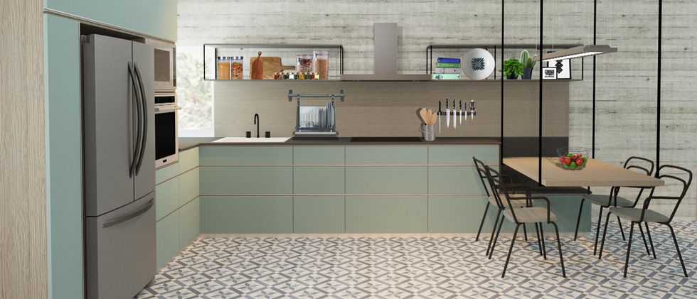 In this project I wanted to show the potential of a 50 square meter rental apartment in Tel-Aviv. My design idea was to turn the apartment from an empty and dull residence to a luxurious and cozy living space. For the living room I used bright colors and a dark green as a contrast, which together with the natural light creates a pleasant harmony of shades and colours. In the kitchen i used green as well, but a much brighter tint in order not to overpower the beautiful natural light.